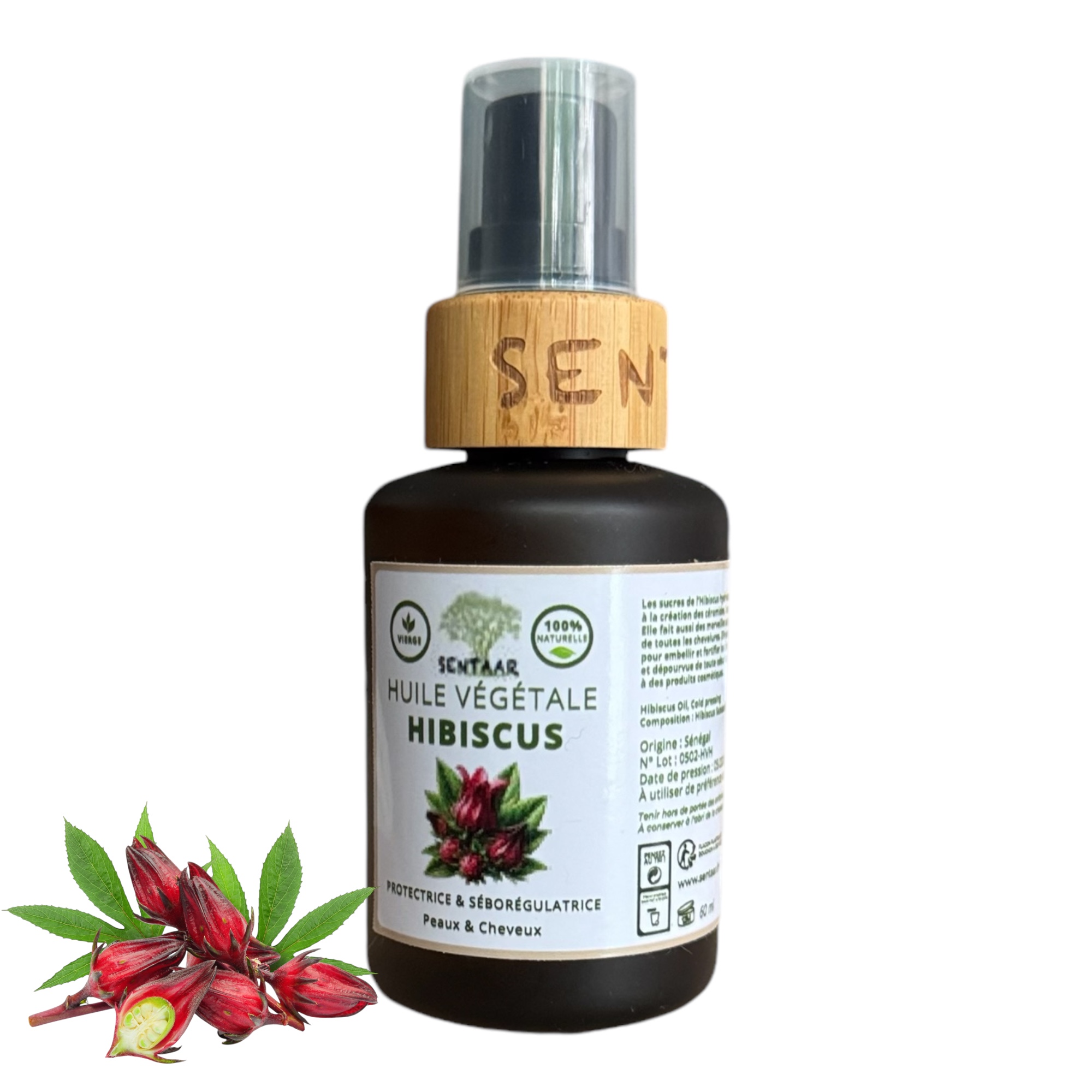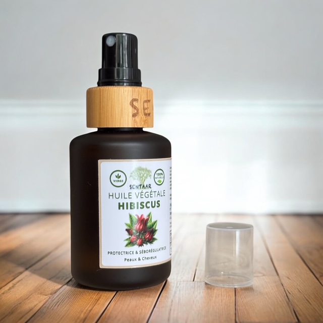 Notre huile d’hibiscus 100 % pure (60 ml) est pressée à froid pour préserver tous ses bienfaits. Riche en vitamine E et en acides gras essentiels, elle hydrate en profondeur tout en luttant contre le vieillissement cutané. Sa texture légère pénètre rapidement sans effet gras, nourrissant et réparant les peaux sèches ou abîmées. Ce véritable soin après-soleil naturel renforce la barrière de la peau et prévient la déshydratation post-exposition. Sentaar, marque de cosmétiques naturels et inclusive, vous propose ce soin anti-âge authentique et sans additifs, pour une peau douce et éclatante au quotidien.